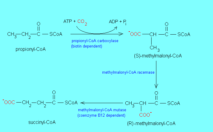 Another reaction that requires the coenzyme biotin is the conversion of propionyl-CoA