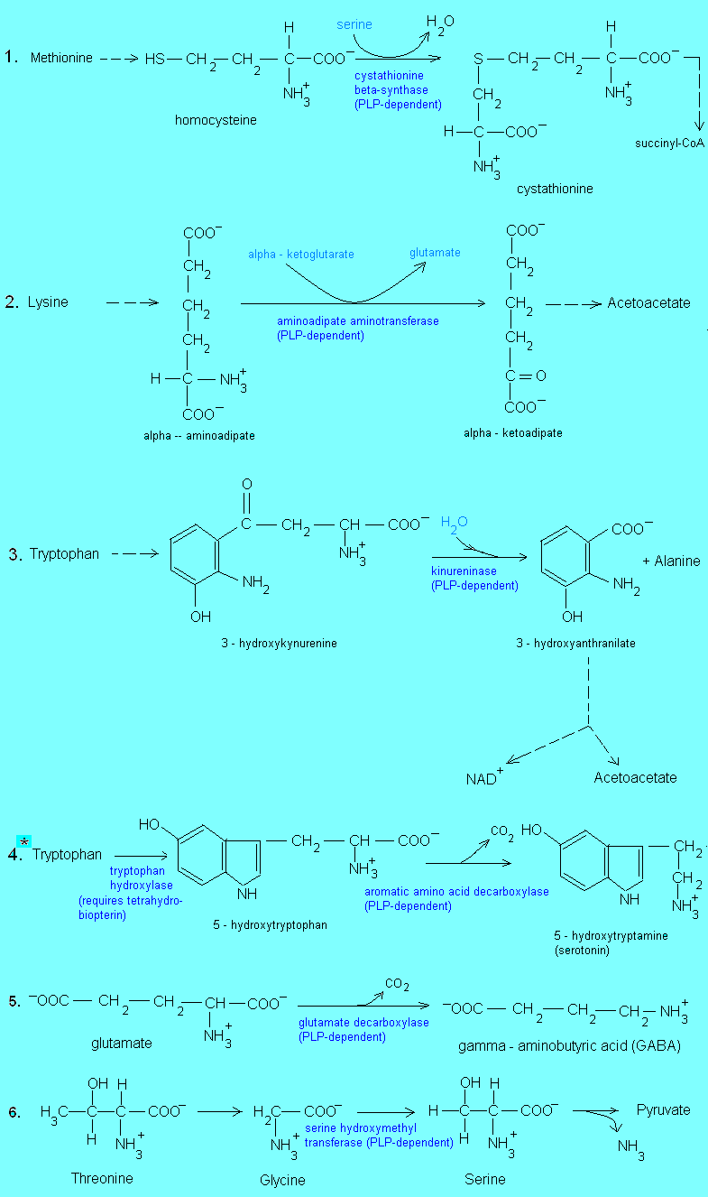 - Necessary for the synthesis and degradation of amino acids (the transaminase reaction catalyzed by
