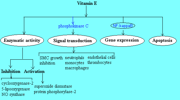 Tocopherols, particularly a-tocopherols, were shown to influence cellular processes such as signal transduction, gene expression and apoptosis. Vitamin E is involved in the modulation of signal